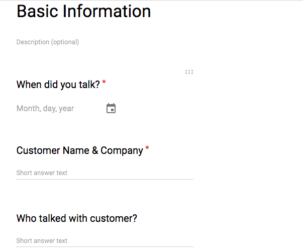 Here you want to capture things like the name, when you talked and who of your team talked.
