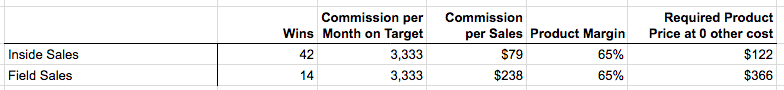 In short, given the above assumptions if you product is below 122$ then inside reps make no sense. If you product is below 366$ then field sales makes no sense.