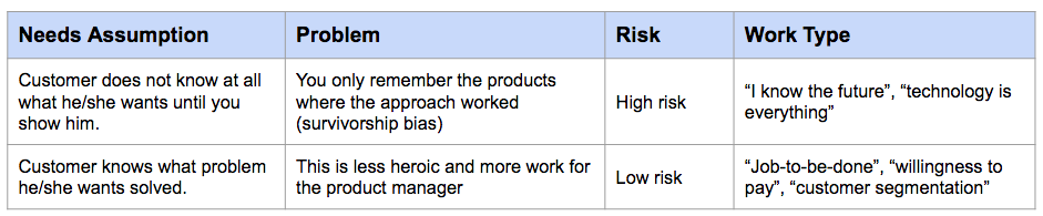 I believe there are two roughly approaches of buildings products. One, is the visionary technology approach captured in quotes like “people don't know what they want until you show it to them.” (Steve Jobs). The alternative process is a jobs-to-be-done approach, that assumes that you can identify at least the problems that need to be solved and approach.
