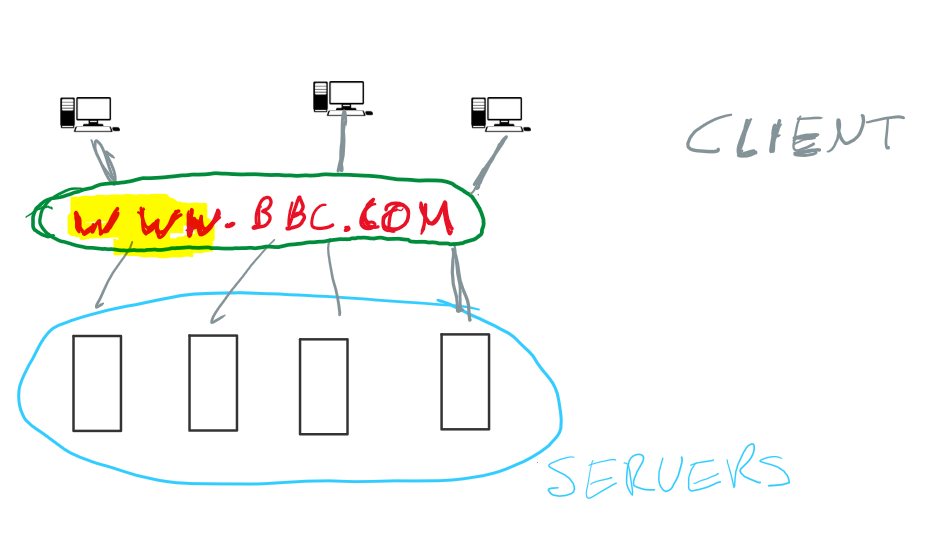 On the left side of this horrible drawing we have on thing called a “Server” on the right we have a something called a “PC” with the apostrophes missing. Both are the same thing. The only difference is that a “server” is specialised to provide content.