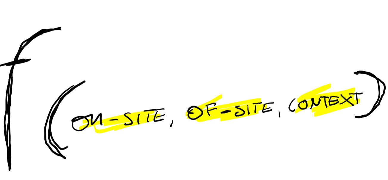 Now, in access of the on-site and the of-site criteria, a third input for the ranking of potential results could be “context” a made up example could be that if people google “fish” on Saturday night, this is more likely to be a search for a fish restaurant, whereas if it is googled in the late morning, this indicates a query for biological content - in this example the context is the time at which the query is made.